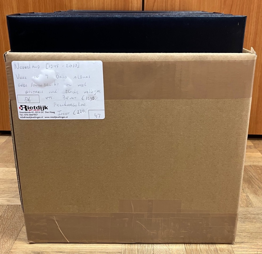 Doos met verz./partij tussen 1852 en 2010, w.bij € 1100,- frankeergeldig in 7 albums of stockboeken en wat los. Click this link for additional images and