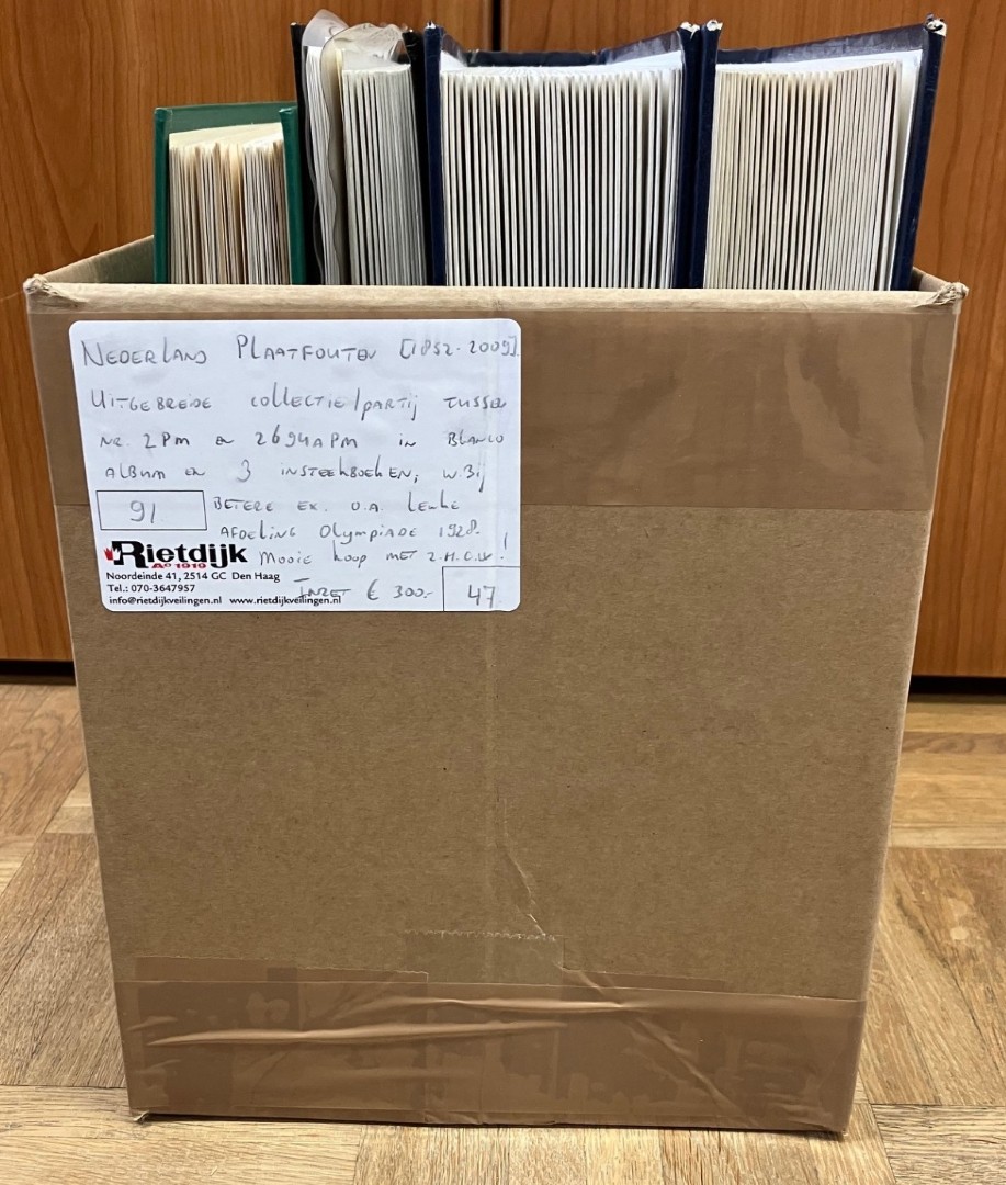 Plaatfouten [1852-2009]. Uitgebreide collectie/partij tussen nr. 2PM en 2694aPM in blanco album en 3 insteekboeken. Bevat betere ex. o.a. leuke afdeling Olympiade 1928. Mooie koop met zeer hoge cat. waarde! Click this link for additional images and certificates. (Image)