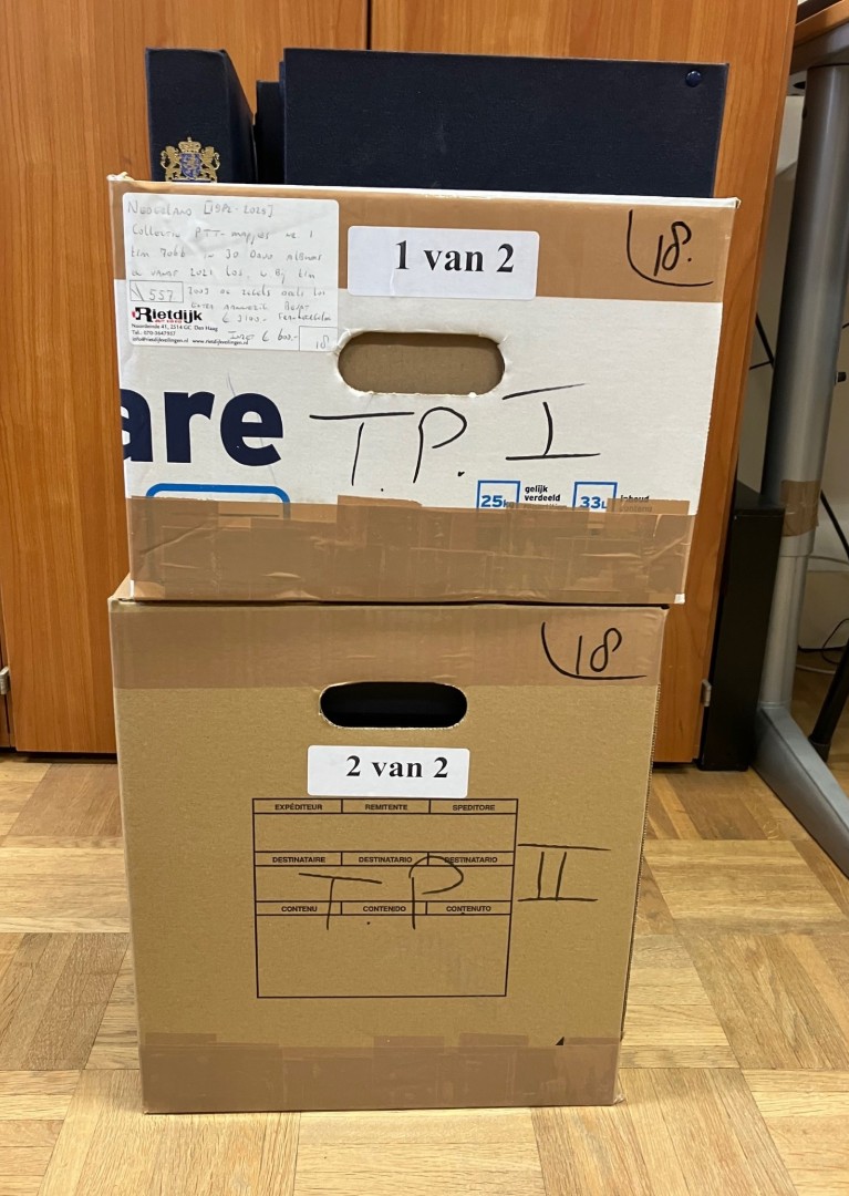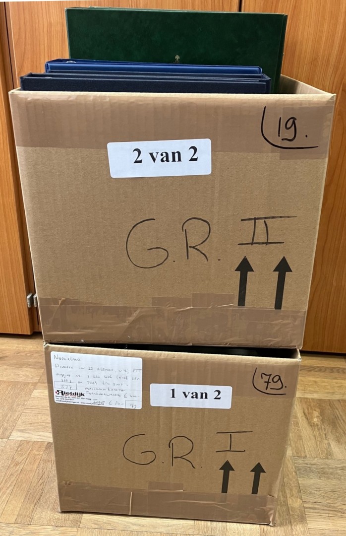 verhuisdozen met restantcollecties en partijen vanaf 1852 in 40 albums of stockboeken en wat los. Bevat o.a. € 900,- frankeergeldig en FDC's t/m 2017. Click this link for