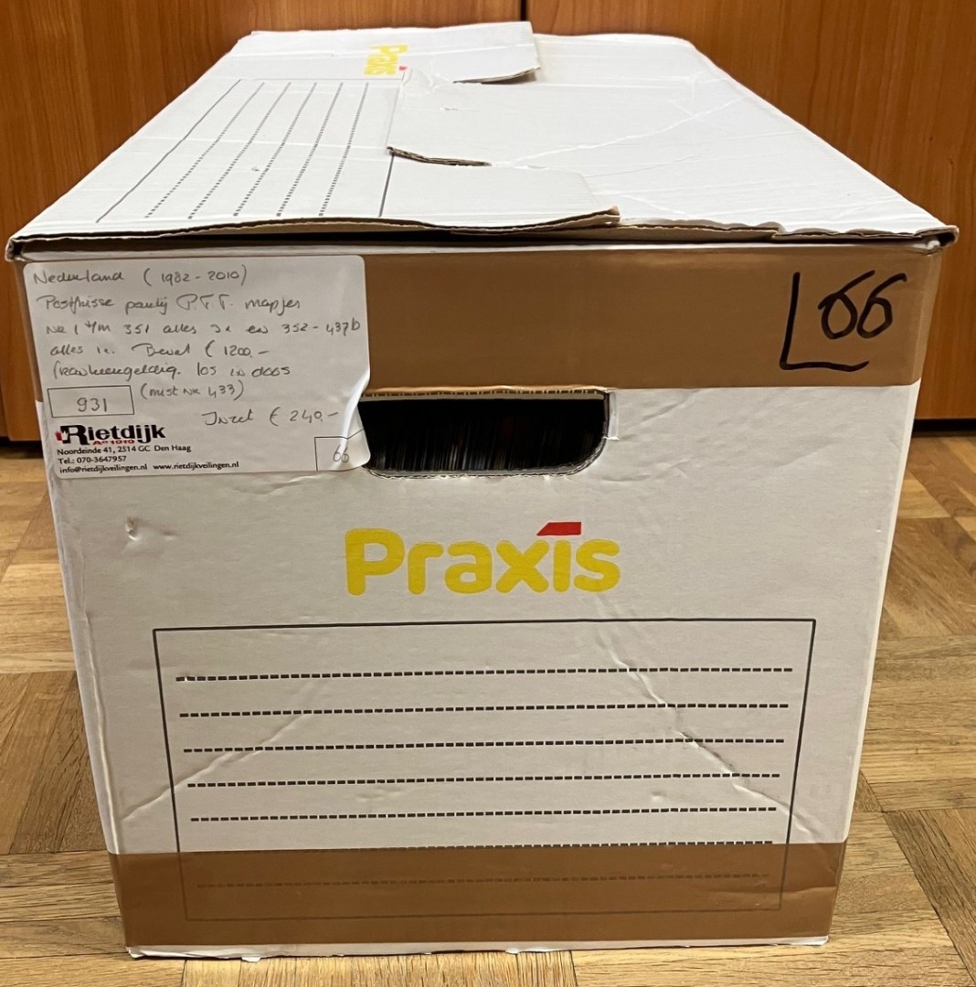 [1982-2010]. Partij PTT-mapjes tussen nr. 1 en 437b los in doos, w.bij € 1200,- frankeergeldig. Click this link for additional images and