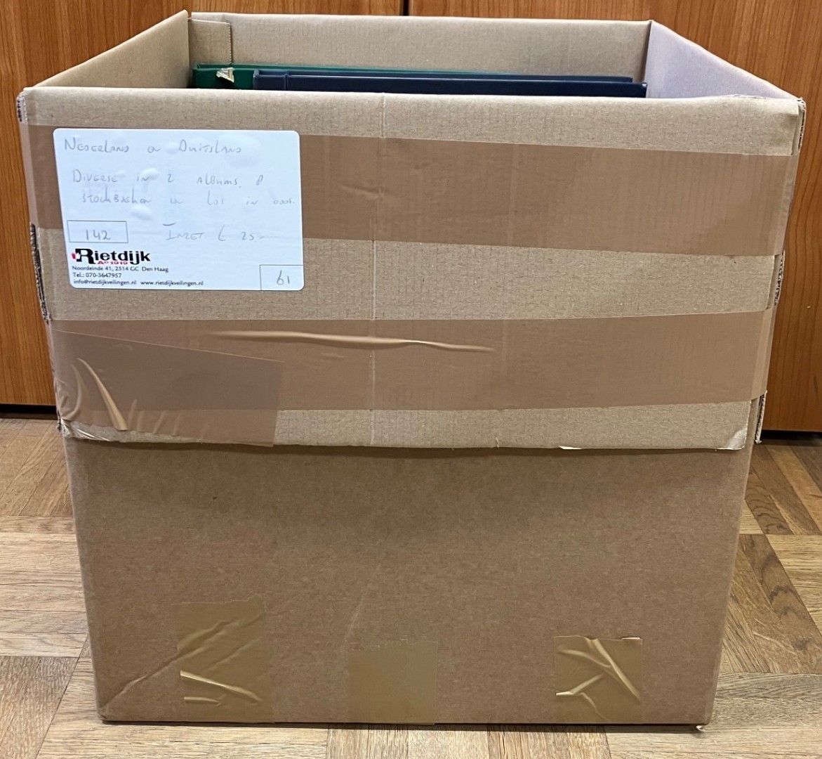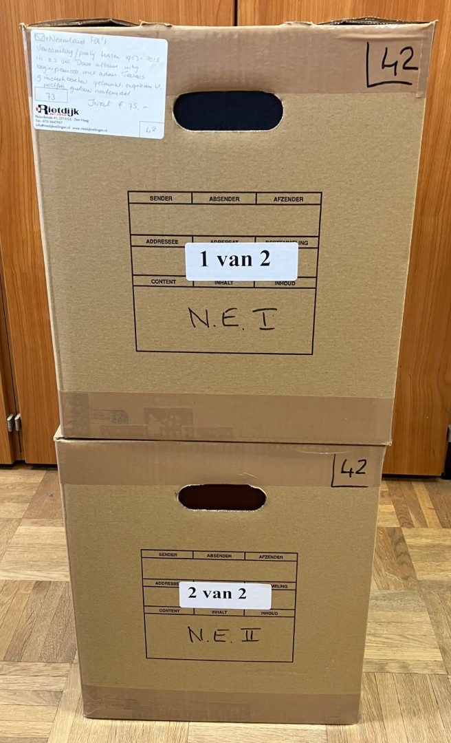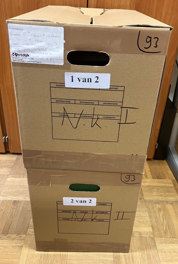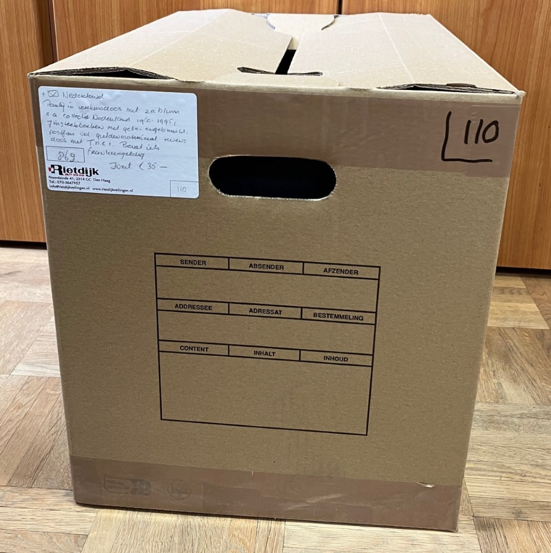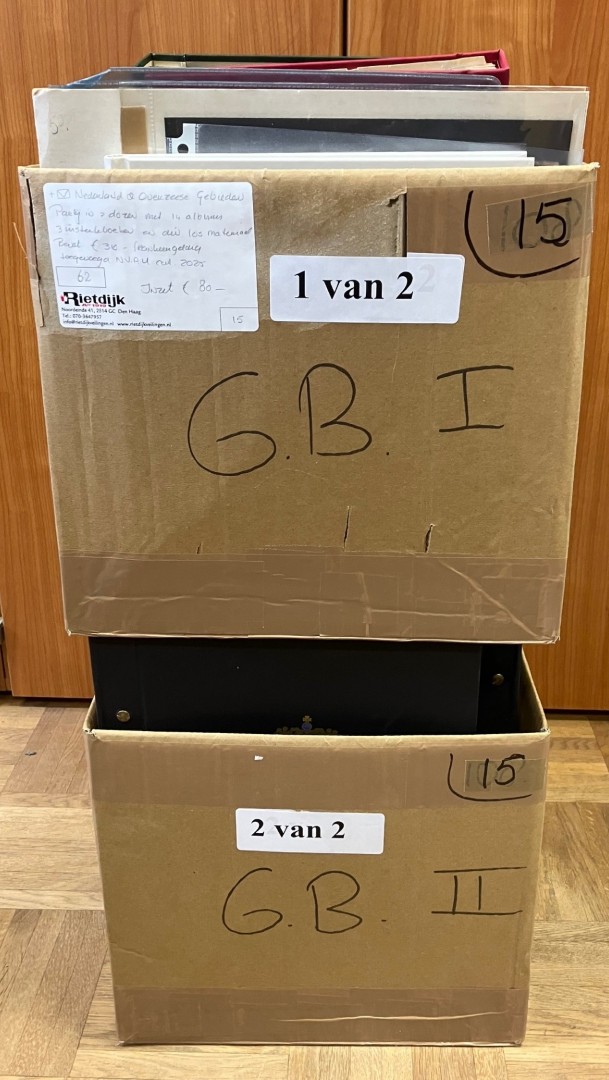 Diverse in 14 albums, 2 kleine en 1 groot stockboek en los materiaal in 2 dozen. Bevat o.a. € 310,- frankeergeldig en FDC's. Ook wat Overzeese Rijksdelen en N.V.P.H. catalogus 2025. Click this link for additional images and certificates. (Image)
