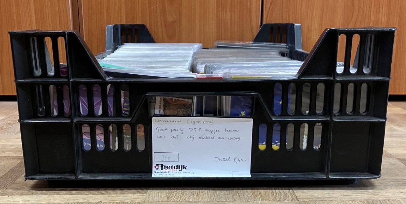 [1982-2001]. Flinke partij PTT-mapjes los tussen nr. 1 en 247 in plastic krat. Click this link for additional images and certificates. (Image)