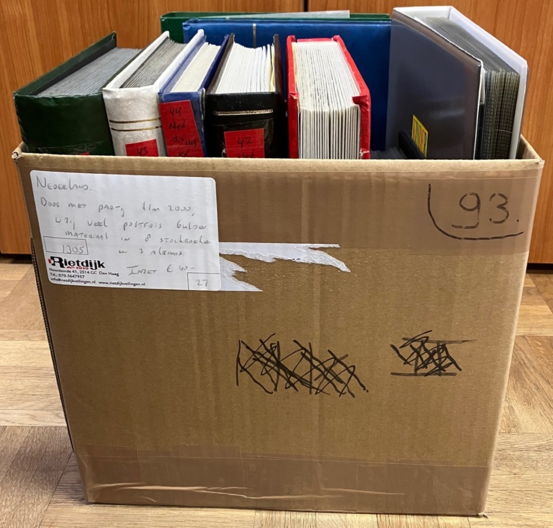 Doos met partij t/m 2000, w.bij veel postfris Gulden materiaal in 8 stockboeken en 3 albums. Click this link for additional images and certificates. (Image)