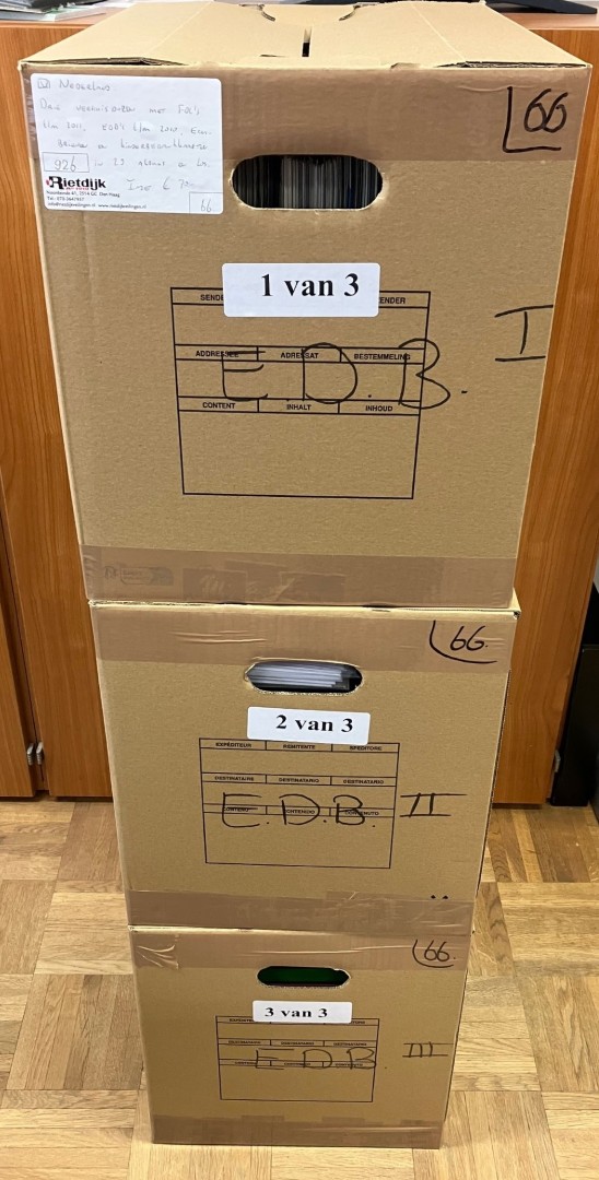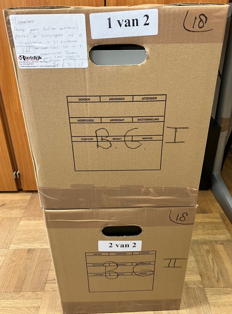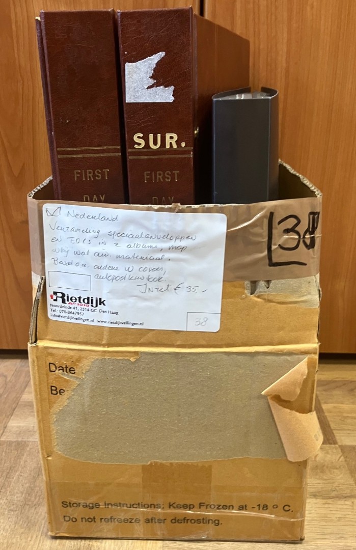 Drie verhuisdozen met FDC's t/m 2011, EDB's t/m 2010, Ecubrieven en kinderbedankkaarten in 29 albums en los. Click this link for additional images and