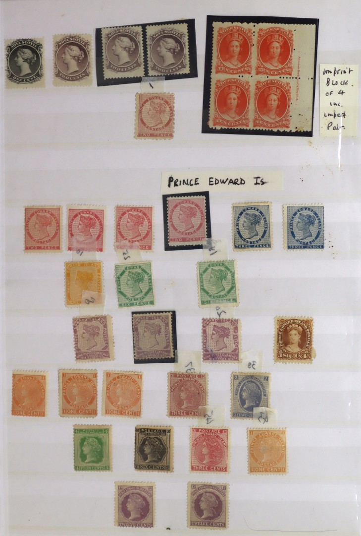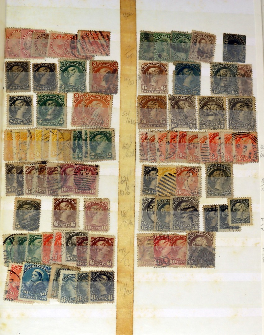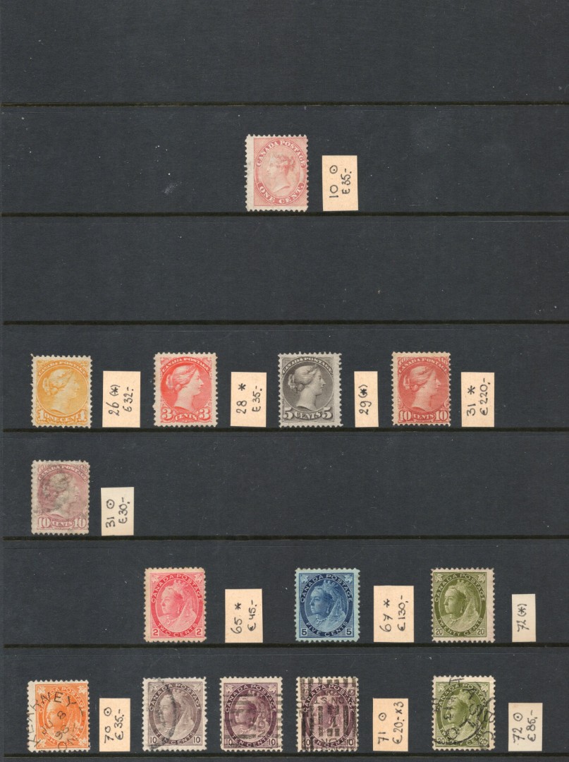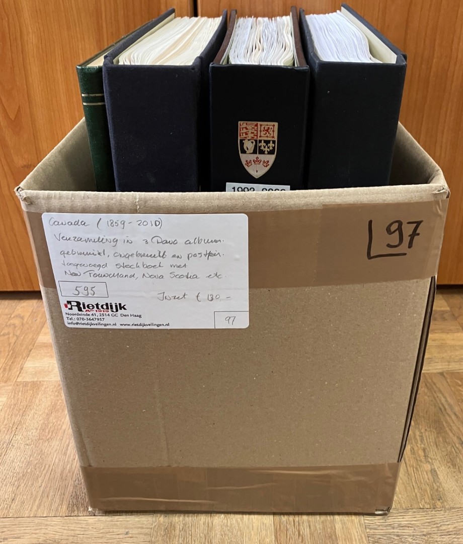 [1859-2010]. Collectie in 3 Davo albums met veel gebruikt doch later ook deels postfris. Tevens stockboek met verz./partij Newfoundland en wat Nova Scotia. Click this