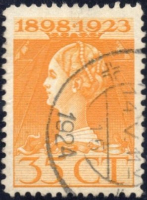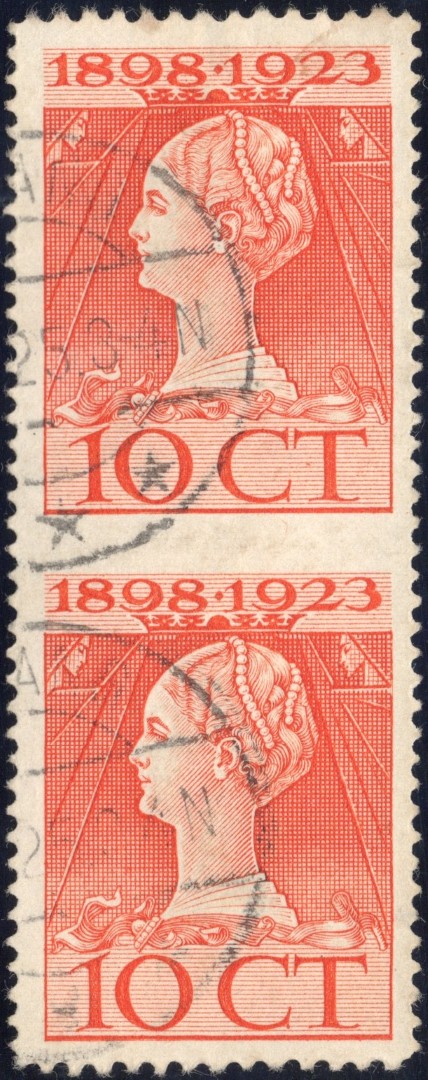 75 in paar, w.bij linker zegel "Wilhelmina met schelvisoog" (rood eigenarenstempeltje op gom). (Image)