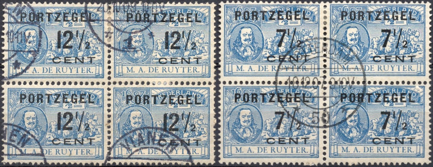 [1907]. Port nr. P37b en P39b in gebruikte blokken van 4 waarin 1x type I met type II tezamenhangend. Click this link for additional images and