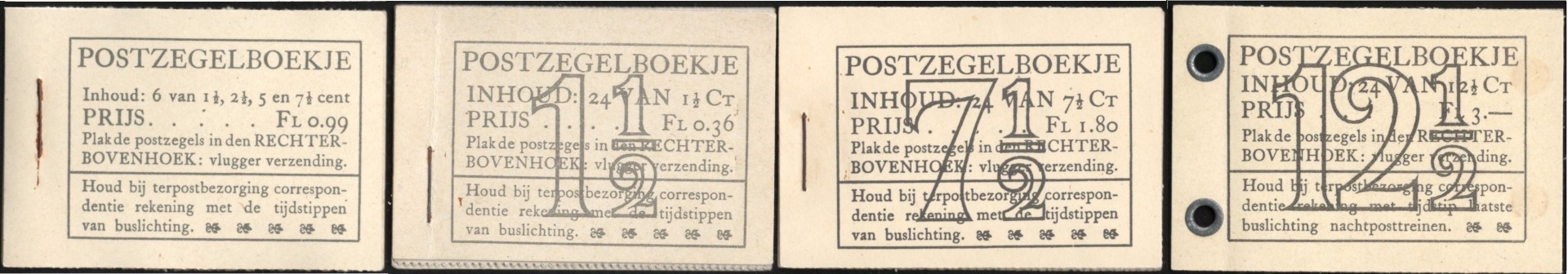 Postzegelboekjes [1935-1942]. Verz. met nr. PZ22d-N, PZ38, PZ45 en PZ51-N, pracht ex. of vrijwel pracht ex. Click this link for additional images and