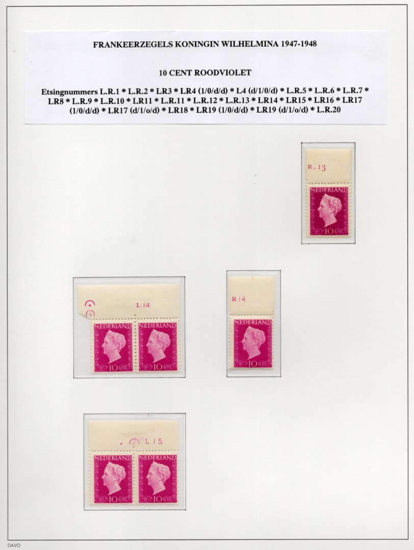 Velrandbijzonderheden [1948]. Verz. etsing- en plaatnummers vnl. ongebruikt/postfris met Hartz nr. 474 t/m 489. Totaal 54 stuks en alle verschillend. Mooie koop! Click