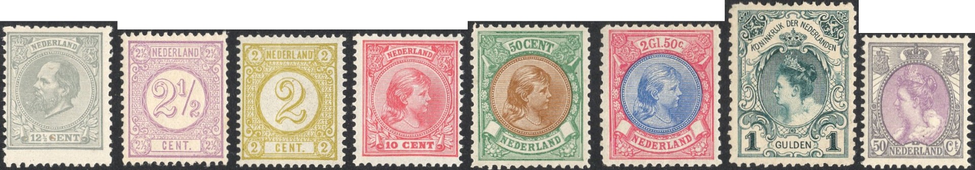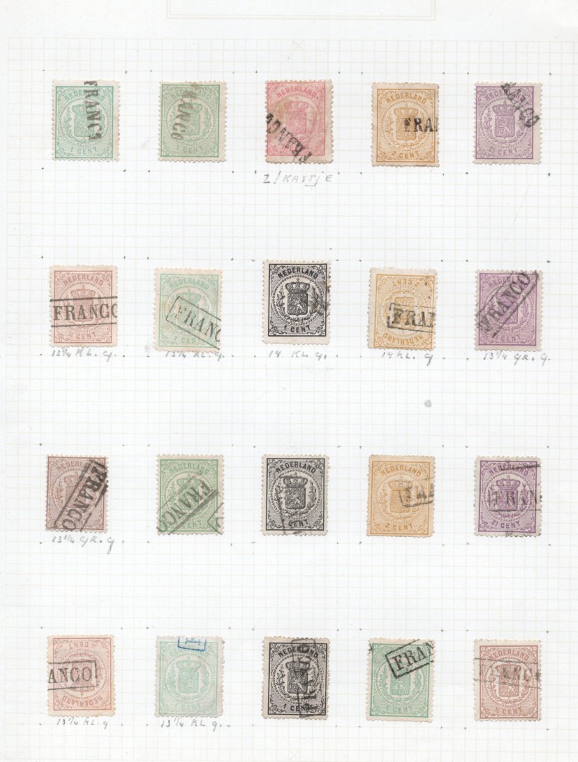 [1869-1899]. ONGEBRUIKTE SAMENSTELLING TUSSEN NR. 13 EN 78, W.BIJ POSTFRIS EN DEELS IN NETTE KWALITEIT OP 2 INSTEEKKAARTEN. MOOIE KOOP MET HOGE CAT. WAARDE! Click this
