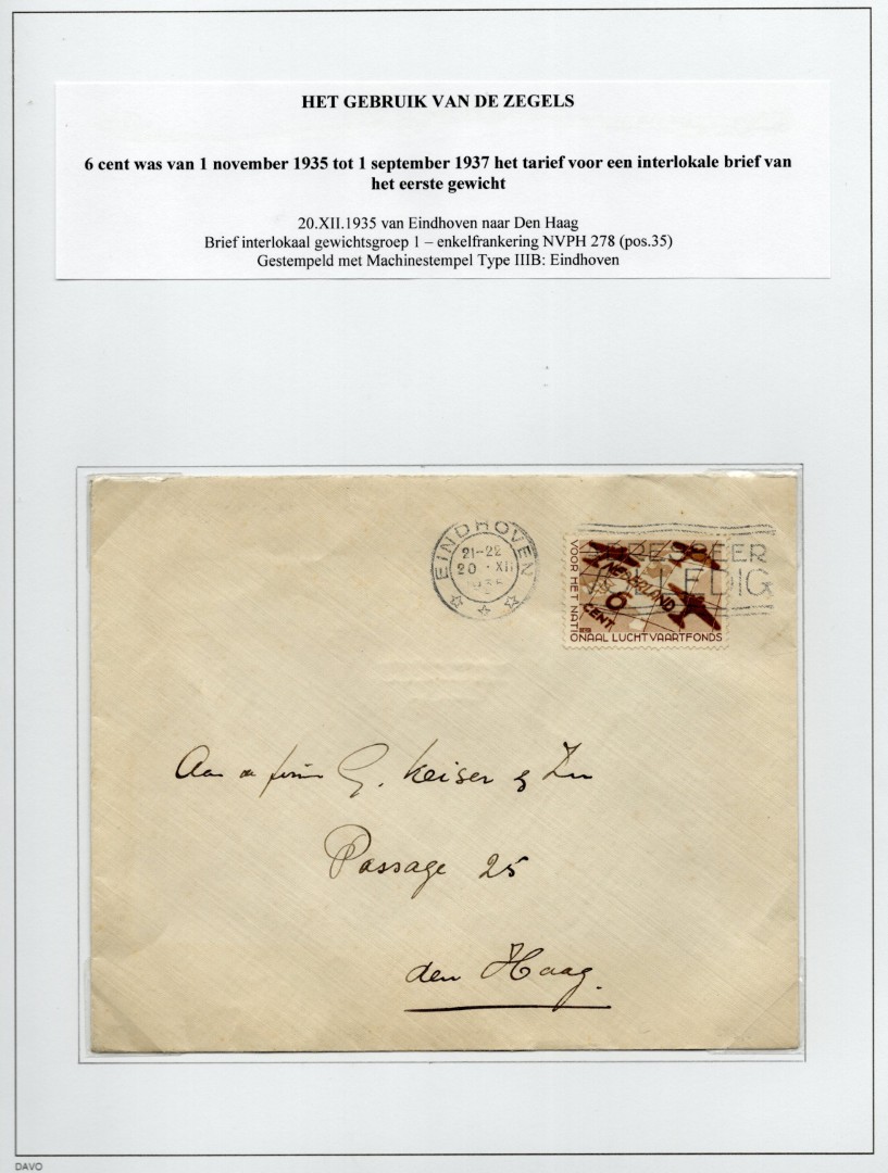 [1935]. Speciaalcollectie luchtvaartfondszegel nr. 278 gebruikt met o.a. plaatreconstructie en plaatfouten op bladen. Click this link for additional images and