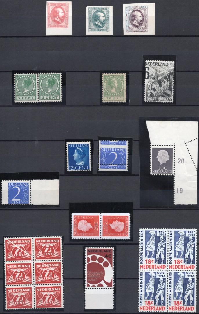 Druktoevalligheden. Leuke verz. op 3 insteekkaarten, w.bij misperforaties, harmonicavouw, spiegeldruk en rakelstrepen. Tevens 3 proeven en wat verschoven opdrukken Untea. Click this link for additional images and certificates. (Image)