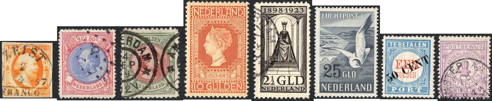 [1852-1952]. MOOIE COLLECTIE MET PRIMA MATERIAAL INCL. LUCHTPOST, POSTBEWIJS, PORT, ETC. IN LUXE DAVO ALBUM. BEGIN GEBRUIKT, W.BIJ STEMPELS EN VANAF 1924 VNL. ONGEBRUIKT, W.BIJ OOK POSTFRIS. PRACHTKOOP MET HOGE CAT. WAARDE! Click this link for additional images and certificates. (Image)