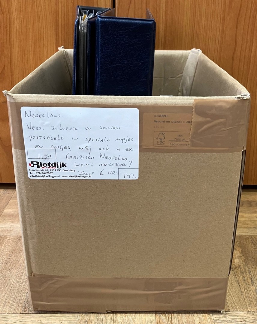 Verz. zilveren en gouden postzegels in speciale mapjes en doosjes, w.bij ook 4 ex. Caribisch Nederland. Weinig aangeboden! Click this link for additional images and