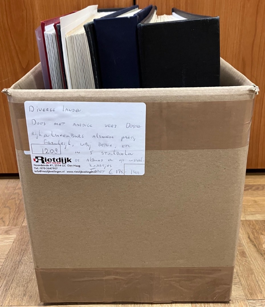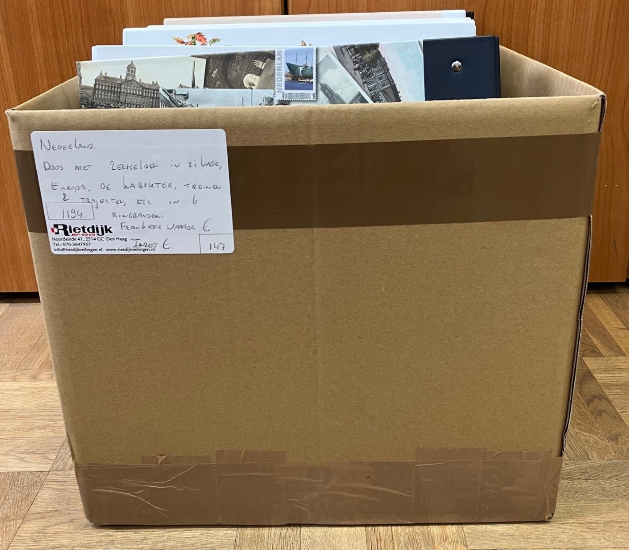 Doos met o.a. Zeehelden in zilver, Europa, De Kabouter, Treinen & Trajecten, etc. in 6 ringbanden. Frankeerwaarde € 1290,-. Click this link for additional images and