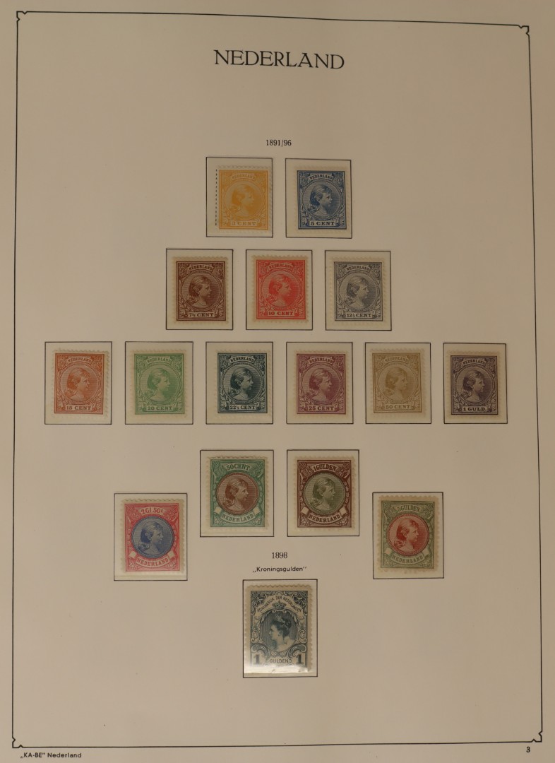 [1891-2008]. SCHITTERENDE INTACT GELATEN COLLECTIE FRANKEERZEGELS GEHEEL ONGEBRUIKT EN VANAF 30-ER JAREN OVERGAAND IN POSTFRIS IN 6 KA-BE ALBUMS. BEVAT O.A. HANGEND HAAR, BONTKRAAG, JUBILEUM 1913 EN 1923, VETH, KONIJNENBURG EN EN FACE. PRACHTKOOP MET