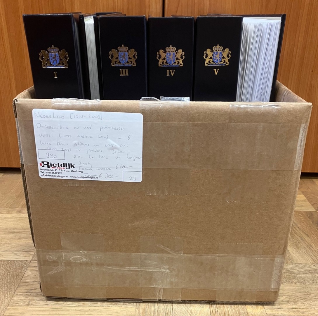 [1913-2009]. Ongebruikte en vnl. postfrisse verz. (iets nieuwe gom) in 6 luxe Davo albums en 2005-2009 (excl. 2007) in jaarsets. Bevat o.a. En Face en Konijnenburg alsmede € 680,- frankeergeldig. Click this link for additional images and certificates. (Image)