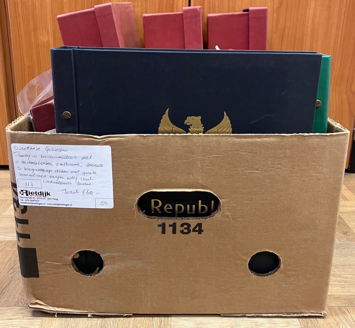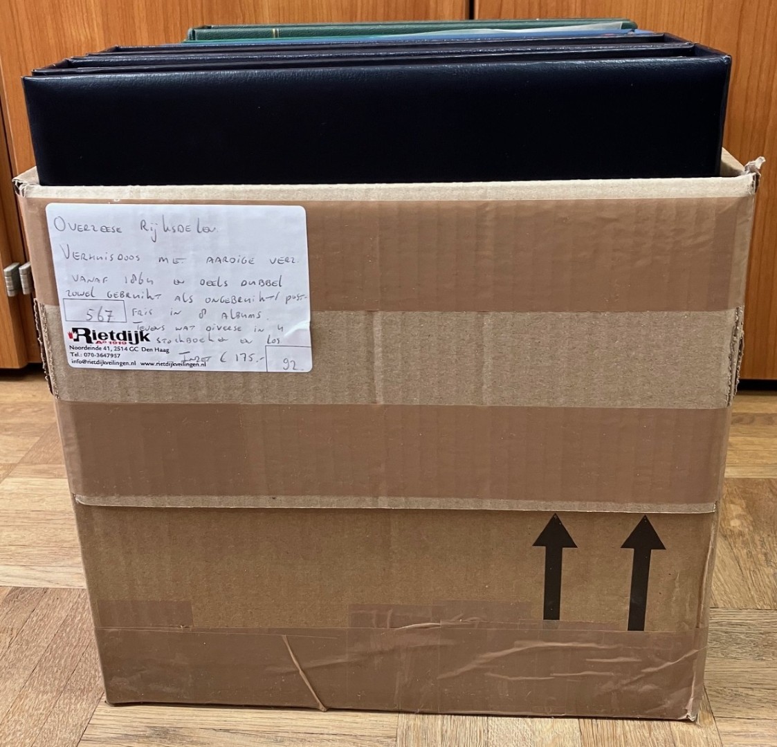 RIJKSDELEN. Verz./partij, w.bij aardig beginperiode in 16 albums in verhuisdoos. Click this link for additional images and certificates. (Image)