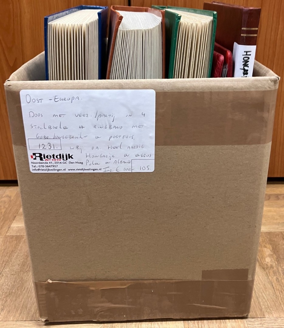 OOST-EUROPA. Doos met verz./partij in 4 stockboeken en ringband met gebr./ongebruikt en postfris, w.bij o.a. heel aardig Hongarije en gebruikt engros Polen en Albanië. Click this link for additional images and certificates. (Image)