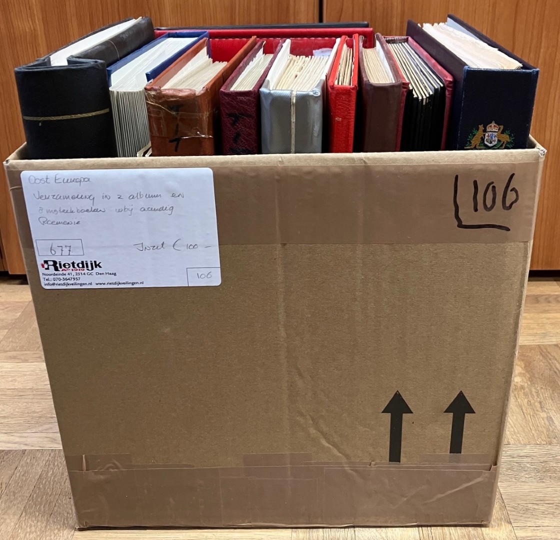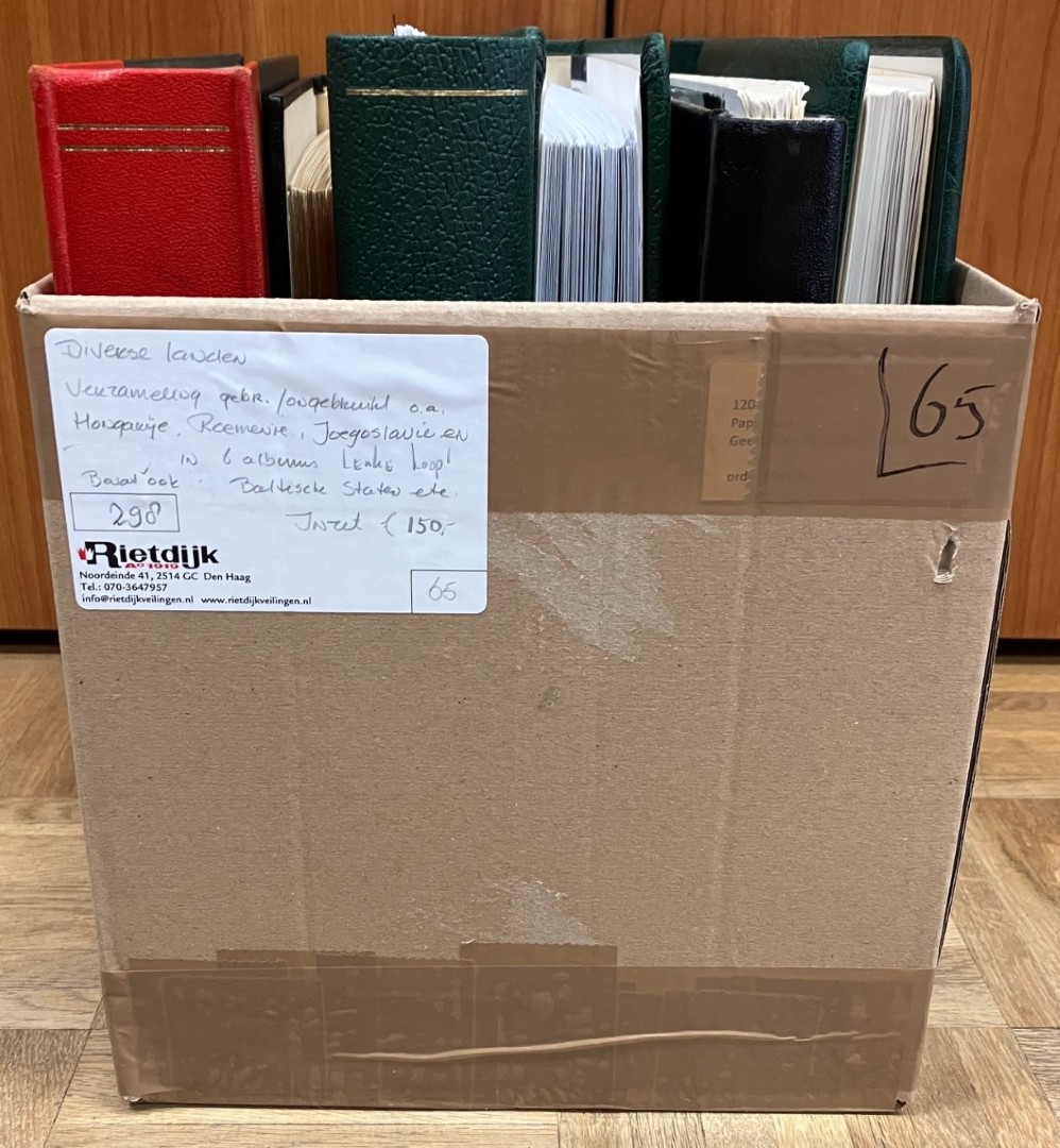 Doos met verz./partij in 2 albums en 8 stockboeken, w.bij o.a. aardige verz. Roemenië vanaf klassiek. Click this link for additional images and