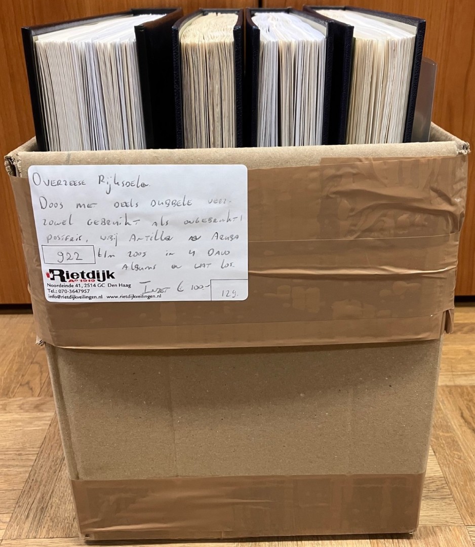 RIJKSDELEN. Doos met deels dubbele verz. zowel gebruikt als ongebruikt/postfris, w.bij Antillen en Aruba t/m 2005 in 4 Davo albums en wat los. Click this link for
