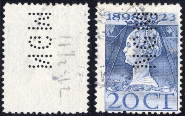 Nederlandsche Glasverzekering Maatschappij) op 20 cent nr. 125G. Niet vermeld in catalogus. (Image)