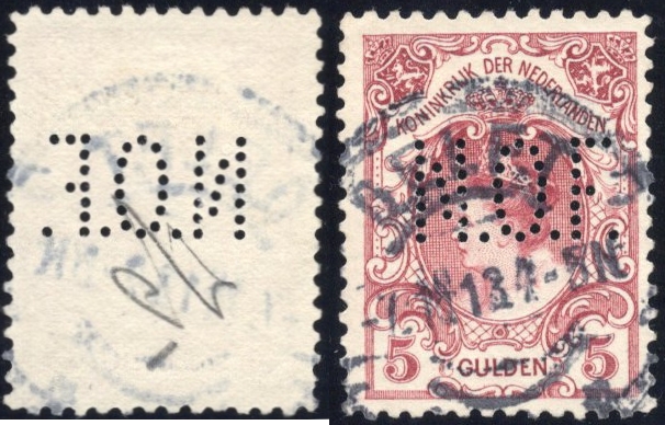 (Oliefabriek-Delft) op 5 Gulden nr. 79C. Niet vermeld in catalogus. (Image)