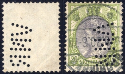 Vereenigde Nederlandsche Rubberfabrieken) op 20 cent nr. 69. Niet vermeld in catalogus, (Image)