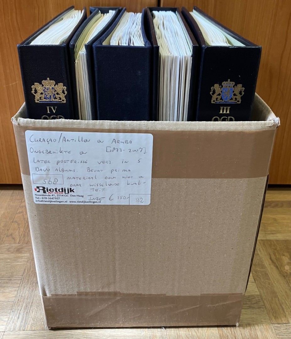 Doos met diverse partijen vanaf oud met veel gebruikt doch ook wat ongebruikt/postfris in 9 stockboeken. Click this link for additional images and