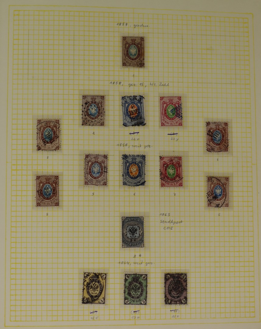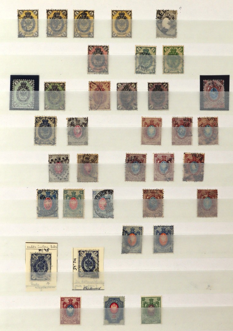 RUSLAND/SOWJET UNIE [1857-1929]. Interessante en gespecialiseerde collectie op blanco bladen en insteekkaarten met gebr./ongebruikt in klemband. Prachtkoop! Click this link for additional images and certificates. (Image)