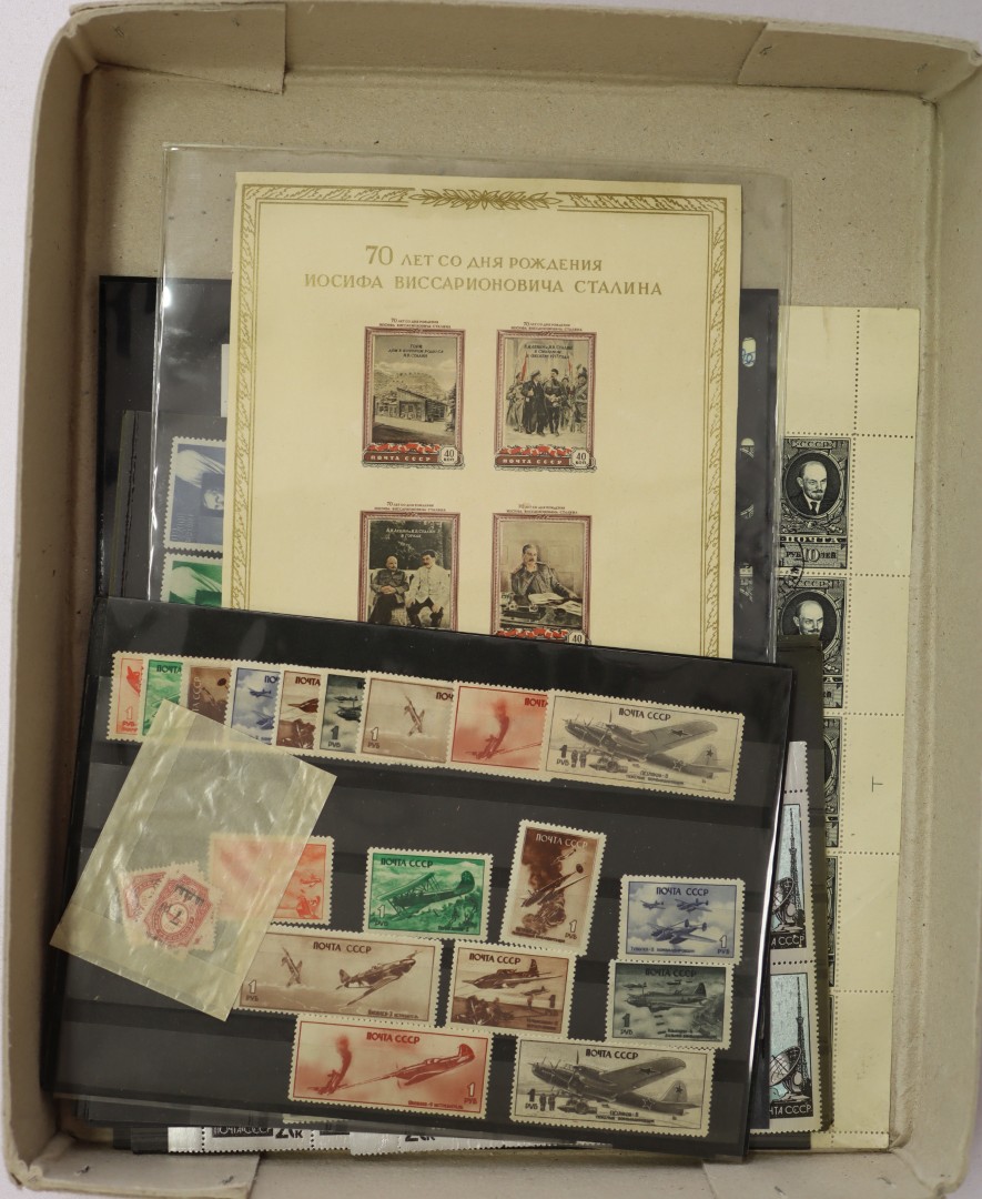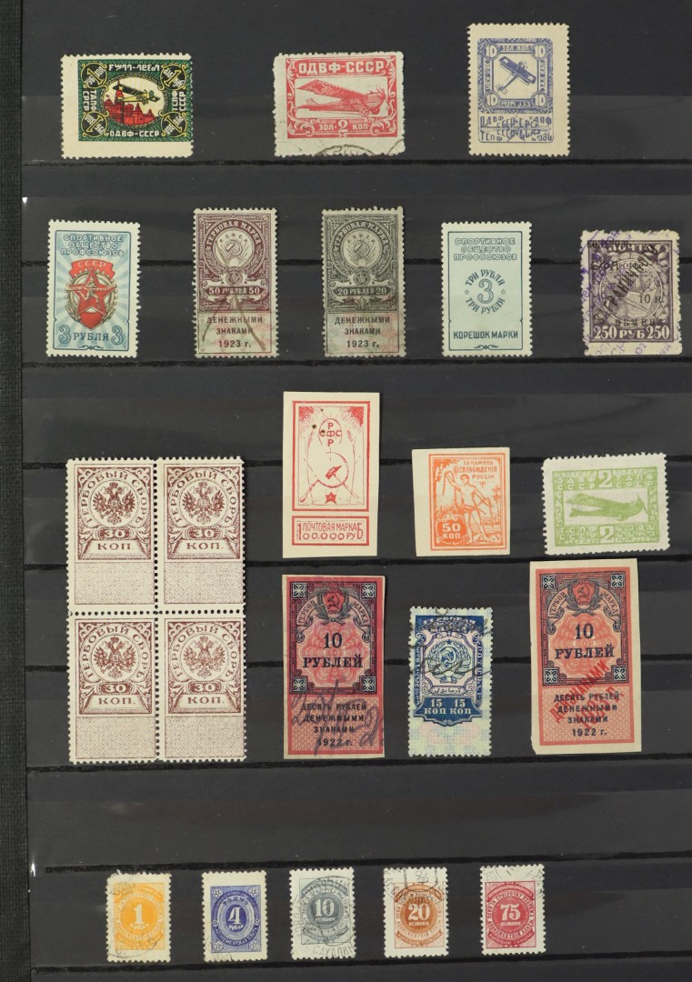 RUSLAND/SOWJET UNIE. Partij vanaf klassiek met veel gebruikt doch ook deels ongebruikt in 7 stockboeken en ordner. Bevat o.a. heel aardig 30-er jaren. Click