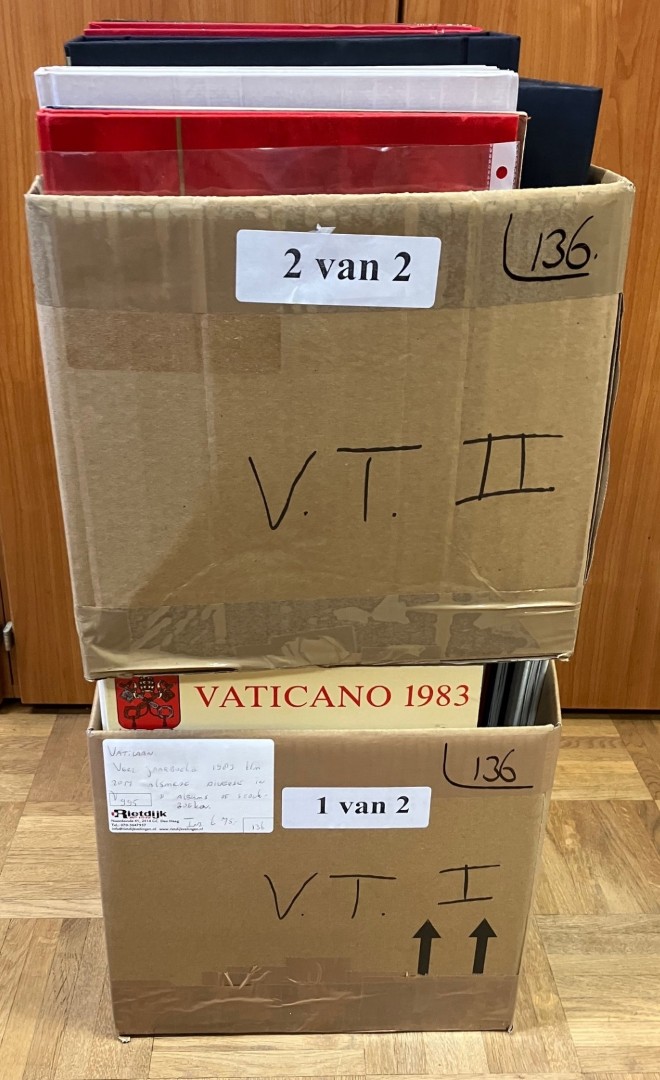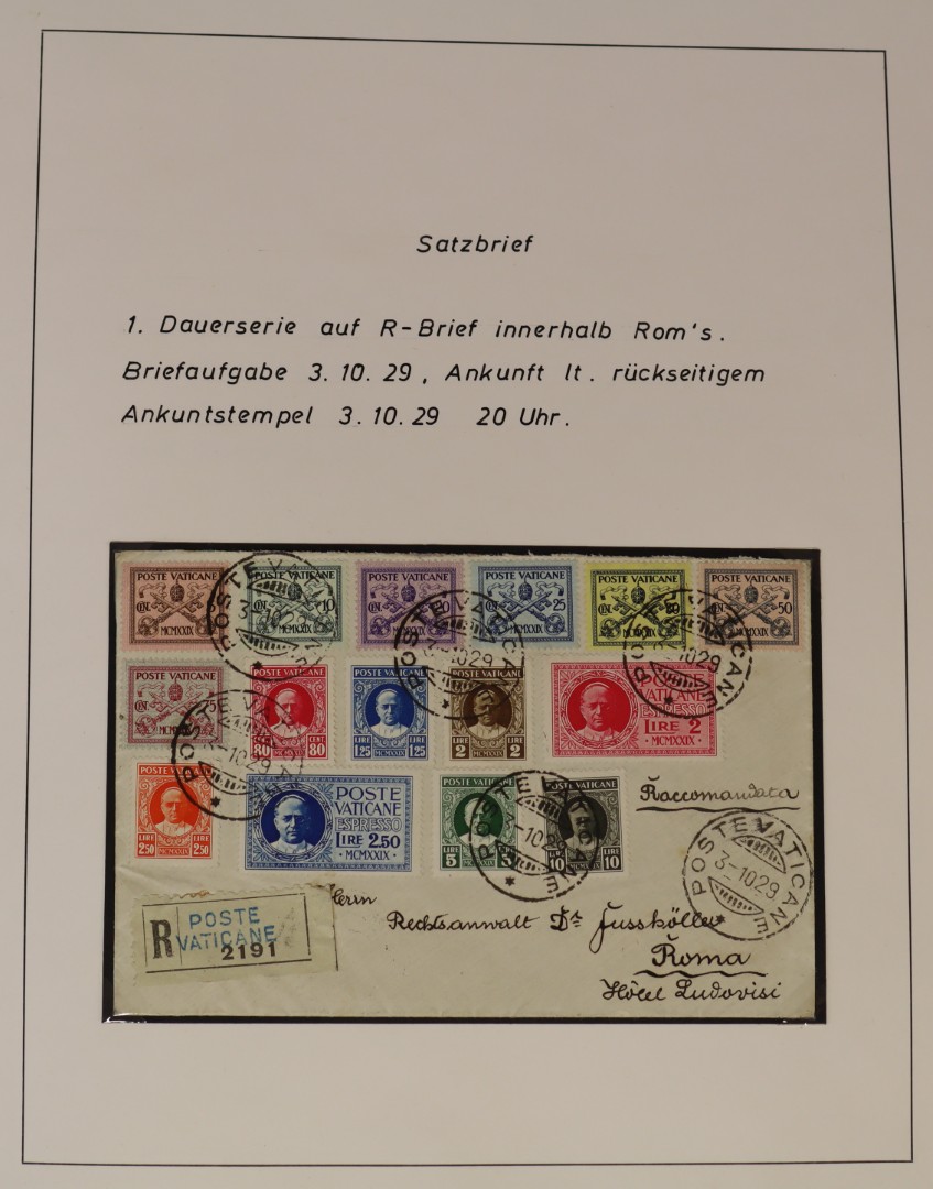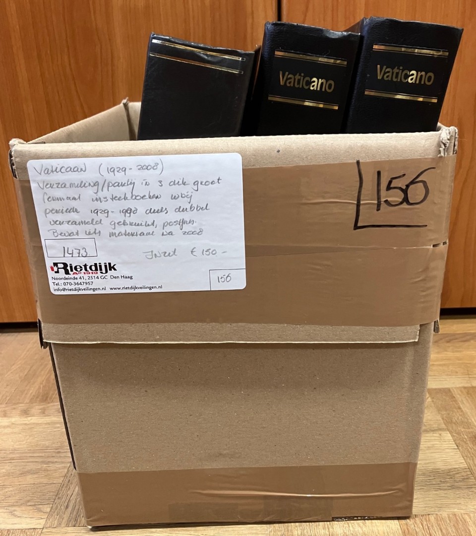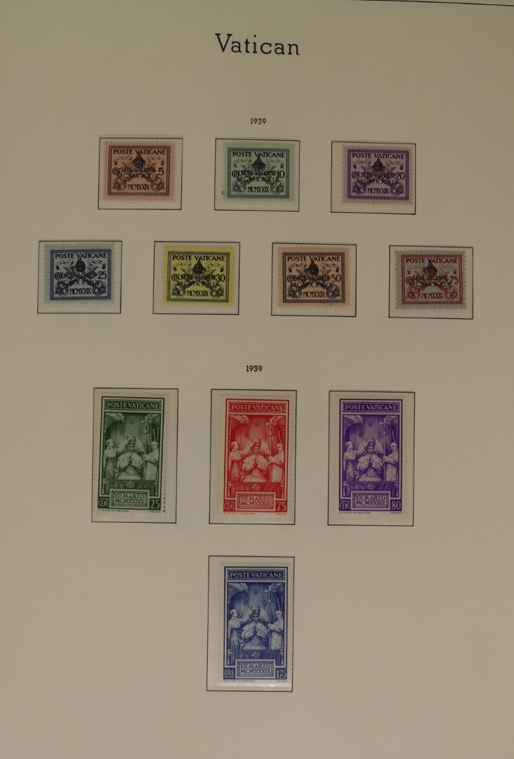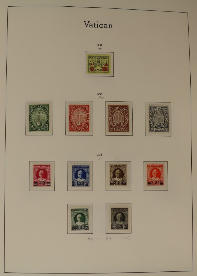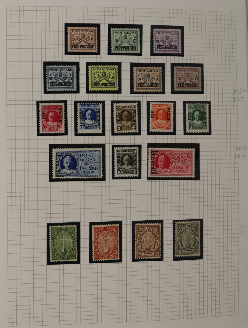 Ongebruikte een veelal postfrisse verz. tussen 1929 en 2001 in 3 albums. Tevens 5 albums covers Pausreizen tussen 1960 en 1980. Click this link for additional images and