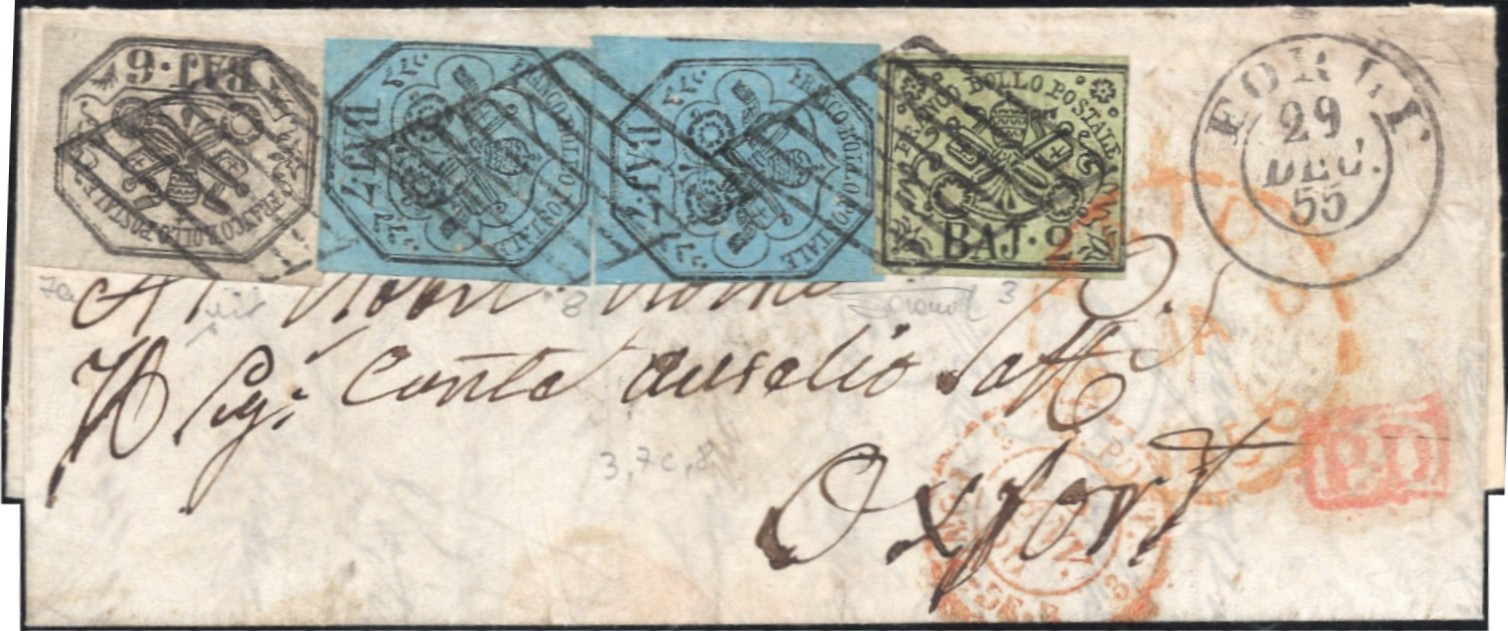 letter with Sassone no. 3, 7a and 8 (2x) from Fogli dated 29 Dec.'55 to Oxford, Great Britain d.o.a. Ja.7.56. With photocertificate Sorani (2023). Click this link for