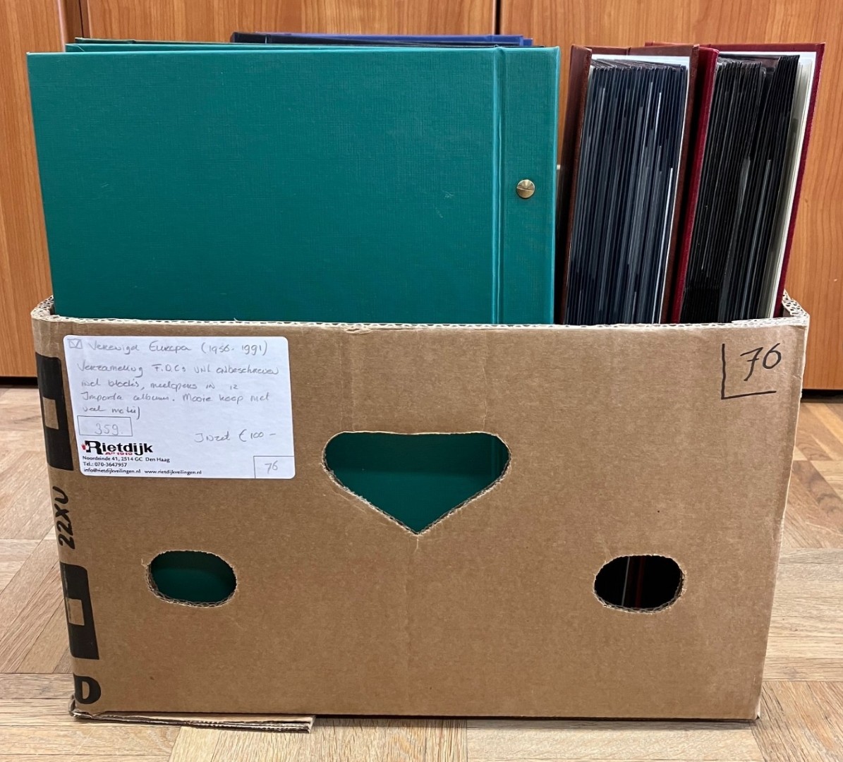 1310 imageVERENIGD EUROPA. VOORRAAD/PARTIJ TUSSEN 1956 EN 2004 MET GEBRUIKT EN POSTFRIS IN 5 ZEER DIKKE INSTEEKBOEKEN EN ALBUM IN VERHUISDOOS. GIGANTISCHE CAT. WAARDE!