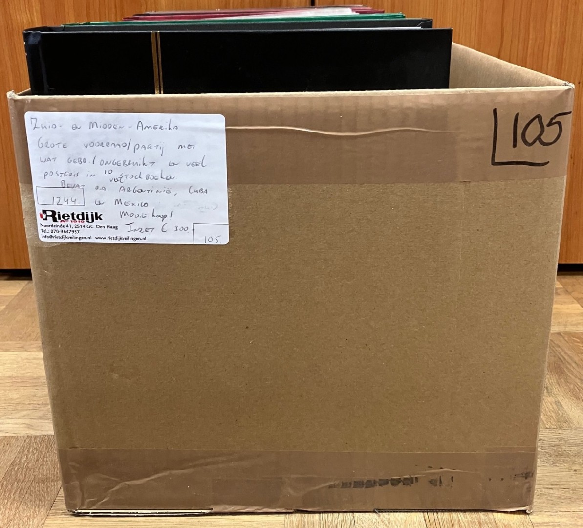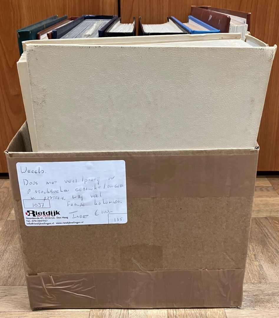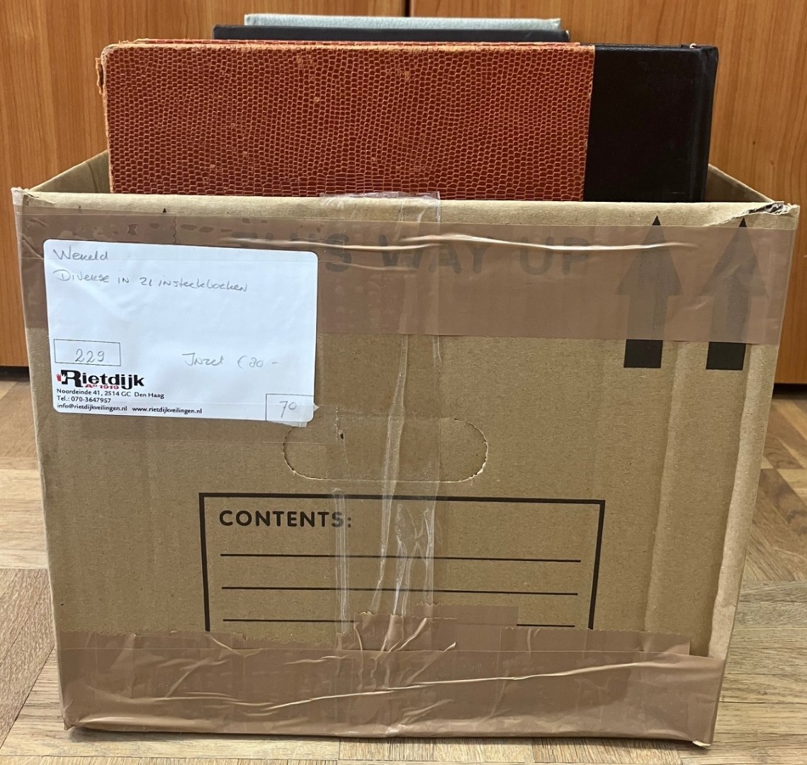 Drie verhuisdozen met vnl. gebruikte partijen meest landen buiten Europa in 45 vnl. grote en 20 kleinere stockboeken. Click this link for additional images and