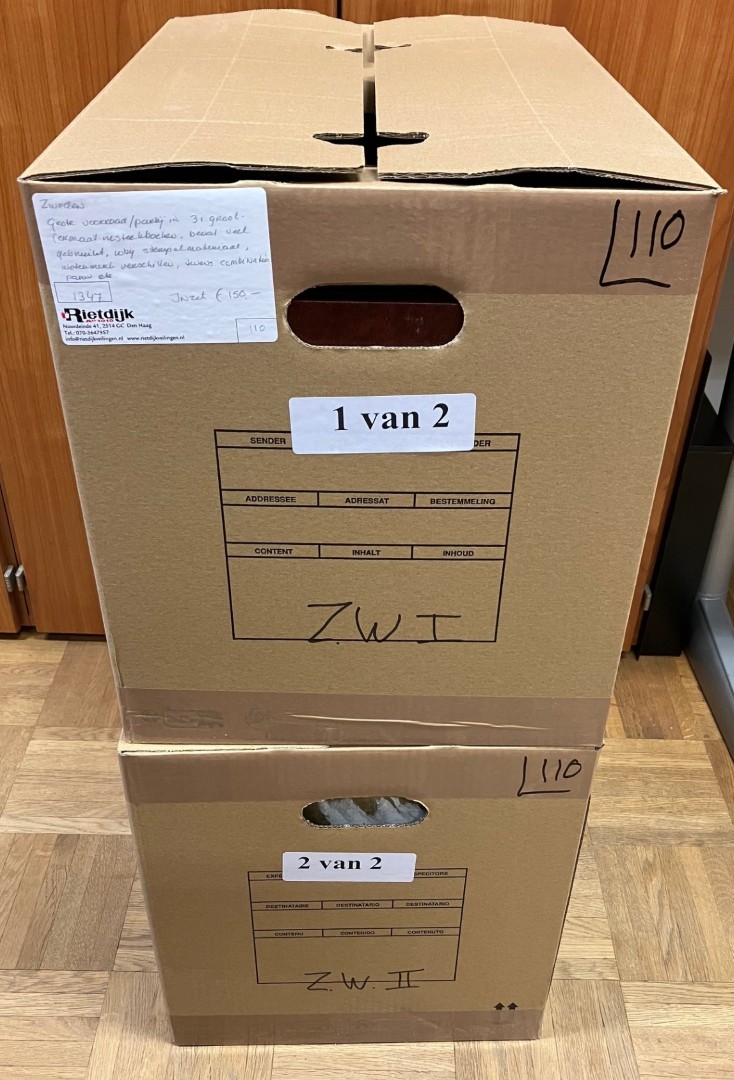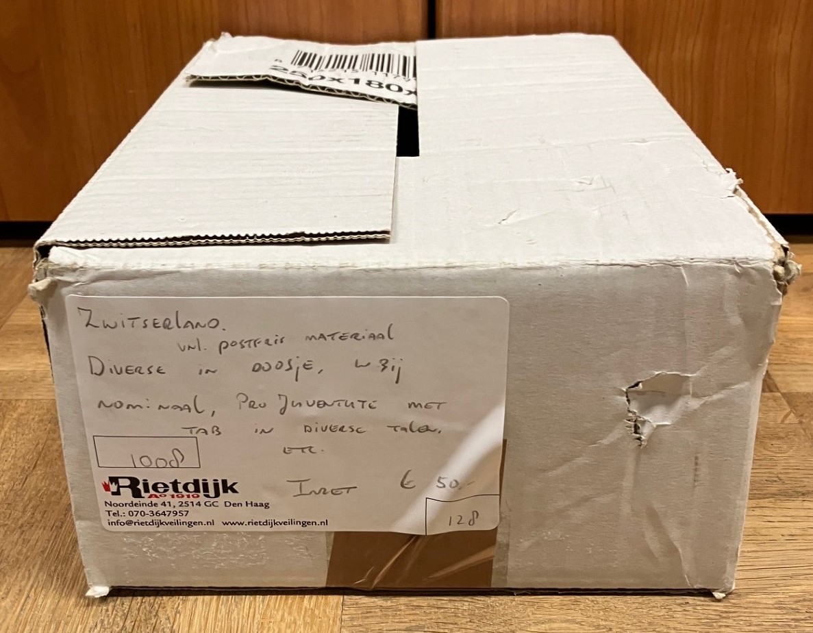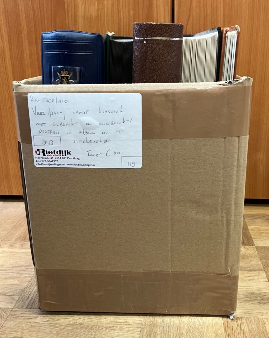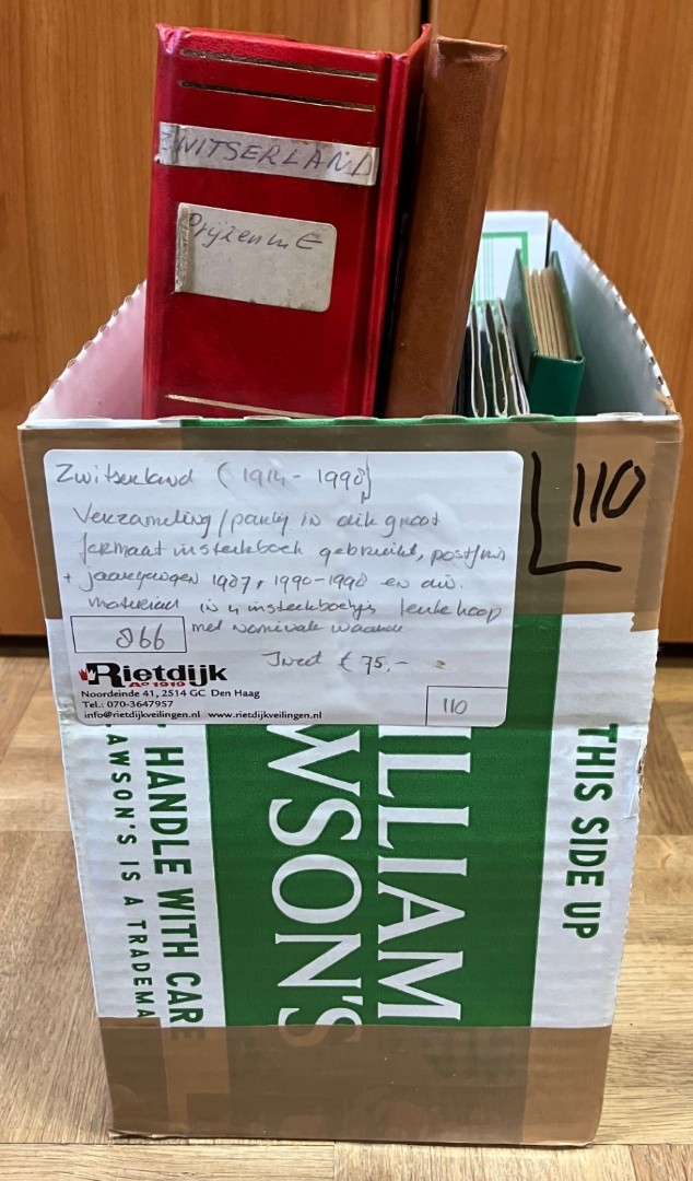 Twee verhuisdozen met voorraden en partijen vanaf klassiek in 31 stockboeken met veel gebruikt materiaal, w.bij o.a. ook stempels. Leuke koop! Click this link for