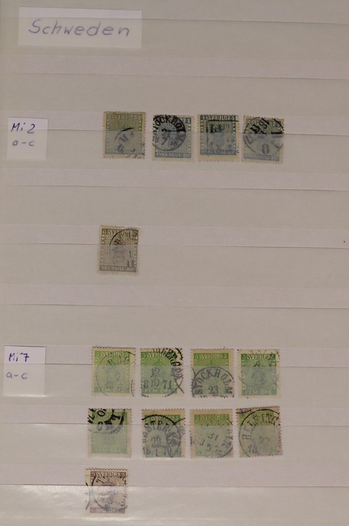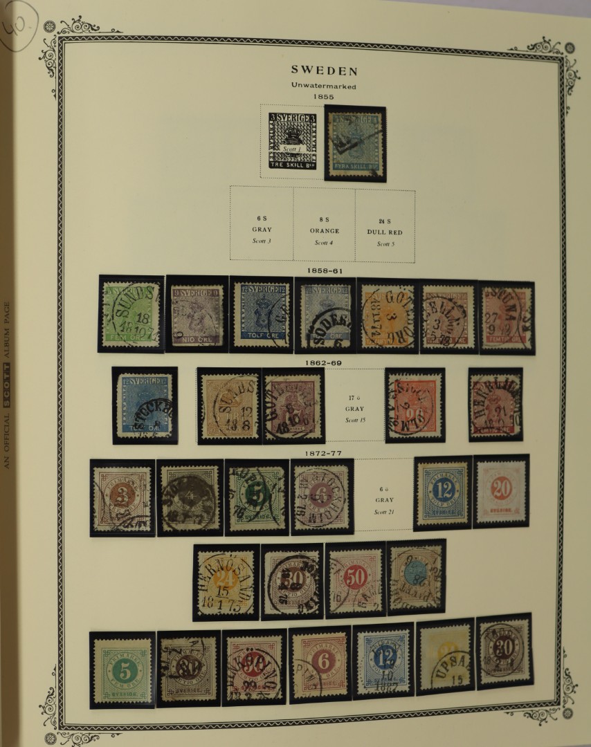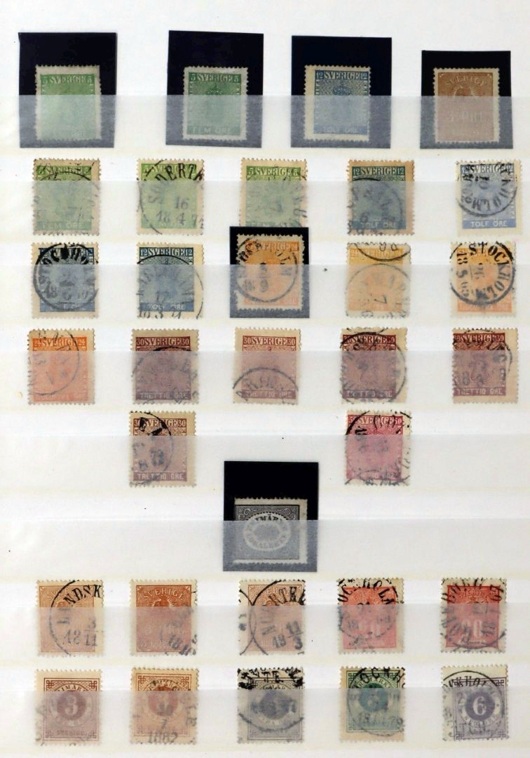 [1858-2011]. UITGEBREIDE EN DEELS GESPECIALISEERDE COLLECTIE MET HEEL VEEL EXTRA ZEGELS DIVERSE LANDEN GERELATEERD AAN ZWEDEN EN OPGEZET OP BLANCO BLADEN IN 12 ALBUMS. BEGIN GEBR./ONGEBRUIKT EN LATER VRIJWEL UITSLUITEND POSTFRIS. BEVAT OOK PRACHTIGE