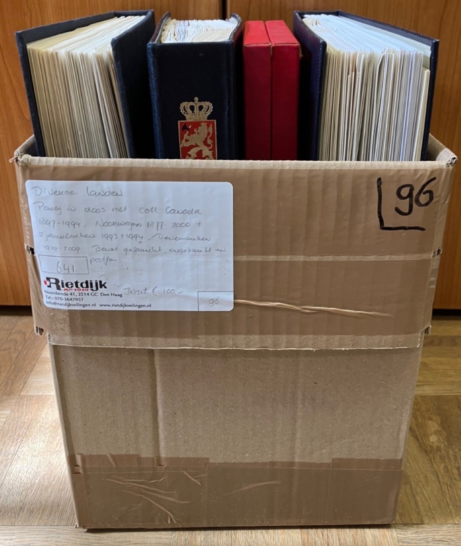 LANDEN. Doos met verz. Canada t/m 1994, Denemarken t/m 2009 en Noorwegen t/m 2000 in 3 Davo albums en 2 jaarboeken met gebr./ongebruikt en later vnl. postfris. Click this