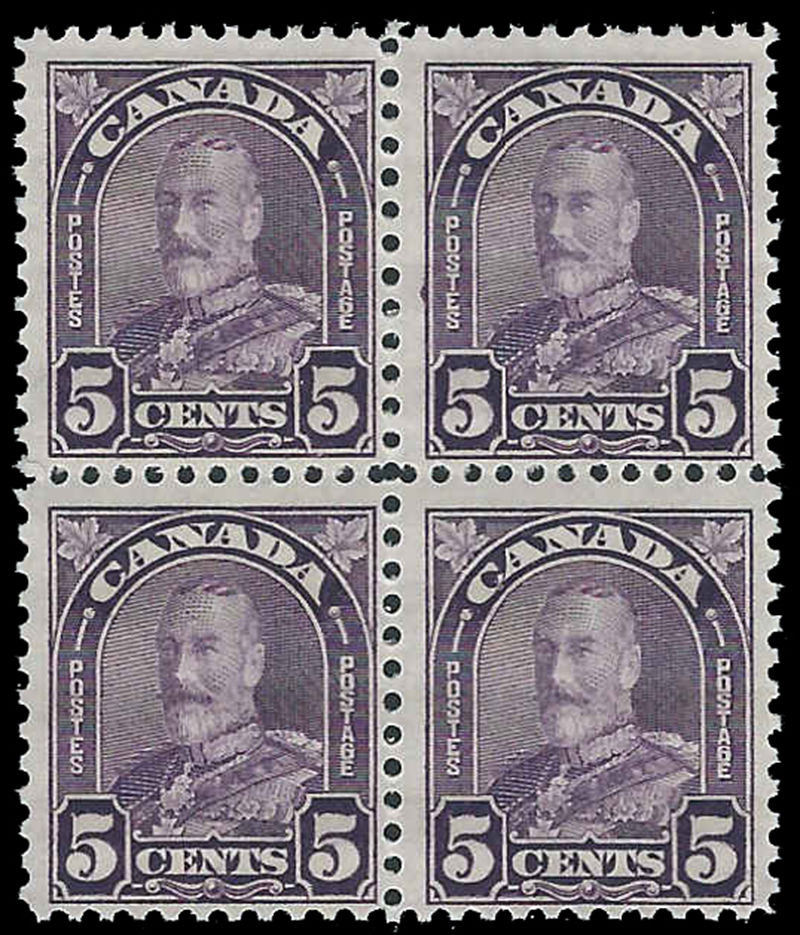 5¢ dull violet Arch BLOCK OF FOUR, og, nh, fine. (Image)