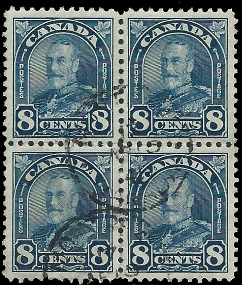 8¢ dark blue Arch BLOCK OF FOUR used with cds, very fine. (Image)
