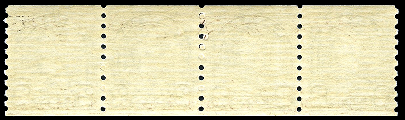 1¢ Arch orange coil, LINE strip of 4, nh, fine (Image)