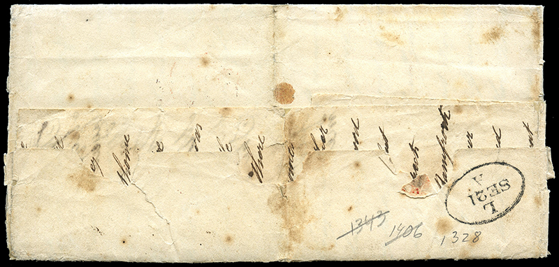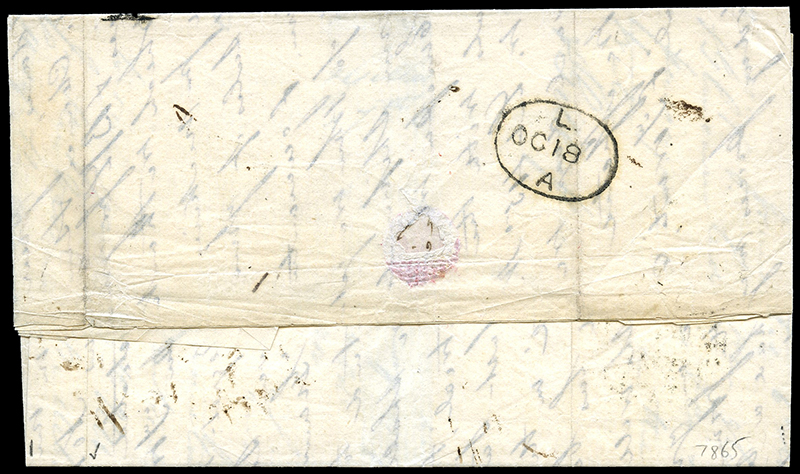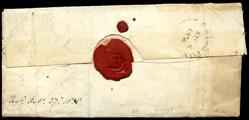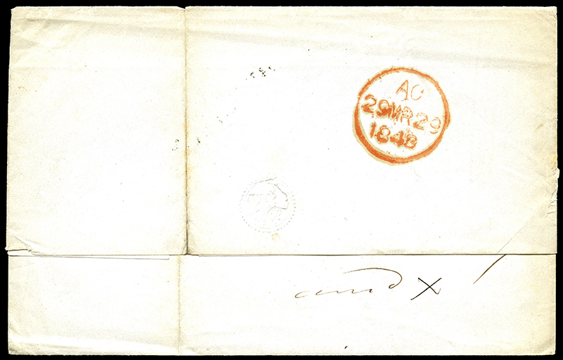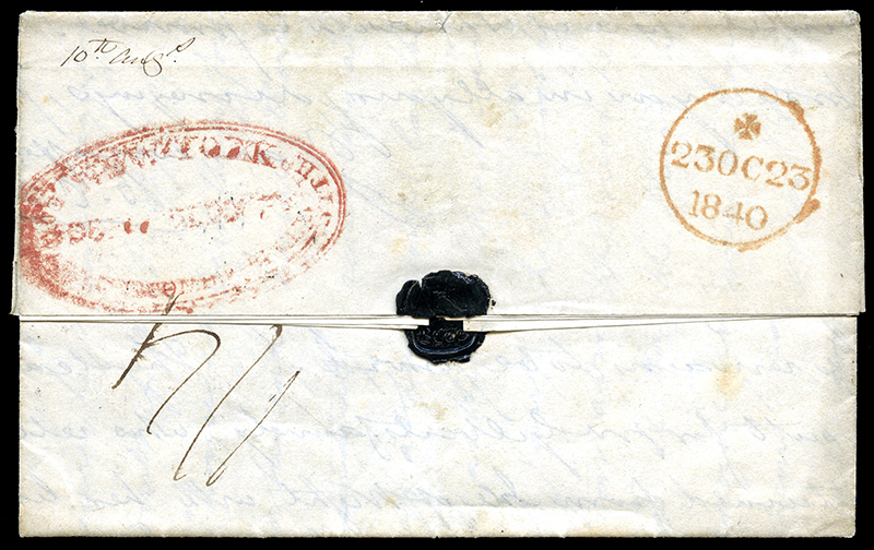 oval DUNSCOMB & BECKWITH forwarding agent handstamp, red 23 OC 23 1840 receiver (Image) (imagea)