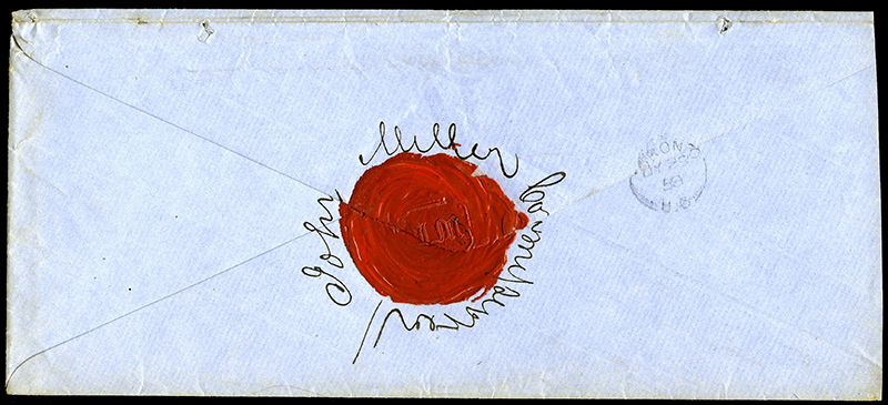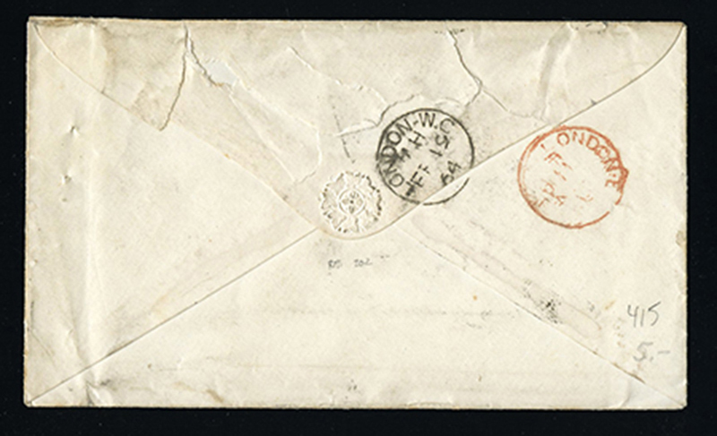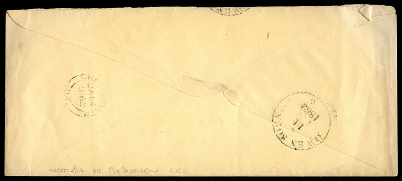 ms ‘1/6’ (Stg) collect (double 6d postage plus 6d fine) with Feb 18 and 19 receivers on back, some flap and edge faults, still a scarce rate cover. (Image) (imagea)