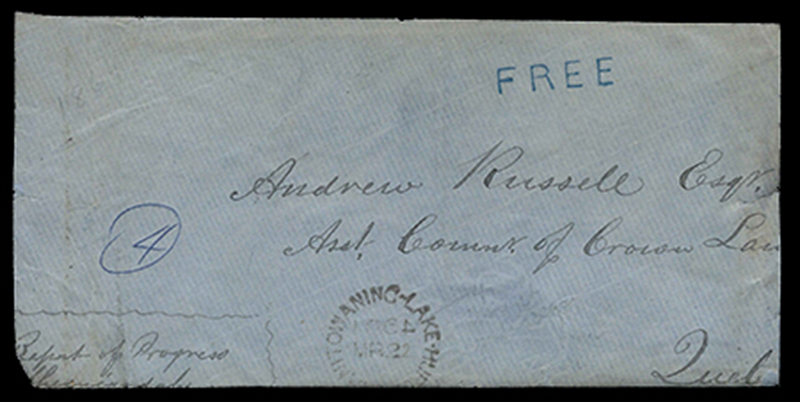 manuscript notation ‘Report of Progress Sheguiandah’ lower left, envelope reduced and open on three sides and slight ageing, still RARE. (Image)