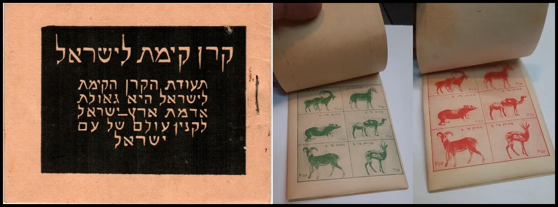 212     imageJNF Poland 1934 "Animals of Eretz Israel" Complete booklet.Set of 36 stamps arranged in 6 panes, catalogued Poland #A60–A71, issued as a booklet. Very rare and highly sought after.