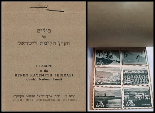 JNF 1937 — Men of Israel and the Five Valleys (Series 2).Six se-tenant stamps (2x3) on booklet panes in five colors, depicting a Palestine map and valley scenes. Printed by Goldberg Press.