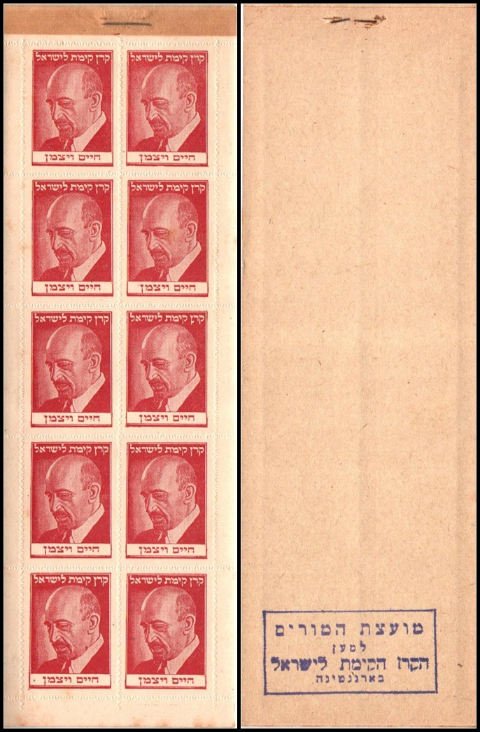 JNF 1931 — Map of Eretz Israel, Youth in E.I., Carmine Booklet #2 (“Alef” א). Complete booklet with cover and 5 panes of stamps: