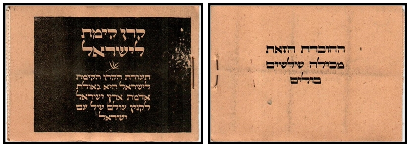 Menorah, Star of David, and agricultural scenes. Issued to raise funds for land acquisition and development in Palestine, Very Fine (VF)