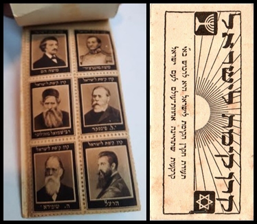 JNF 1916, Pioneers of Zionism (First Series). Issued to commemorate the 20th anniversary of the death of Hermann Zvi Schapira. Complete booklet containing 5 panes, each pane arranged 2 x 3 stamps. Rochlin Catalog 50–55.