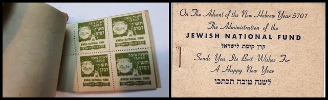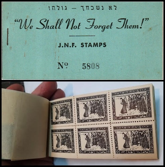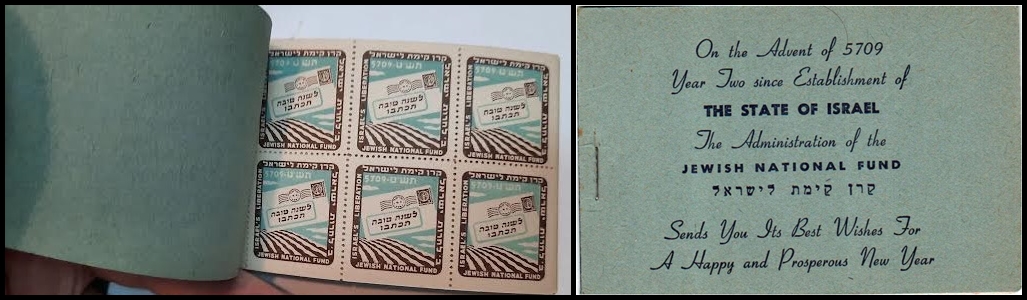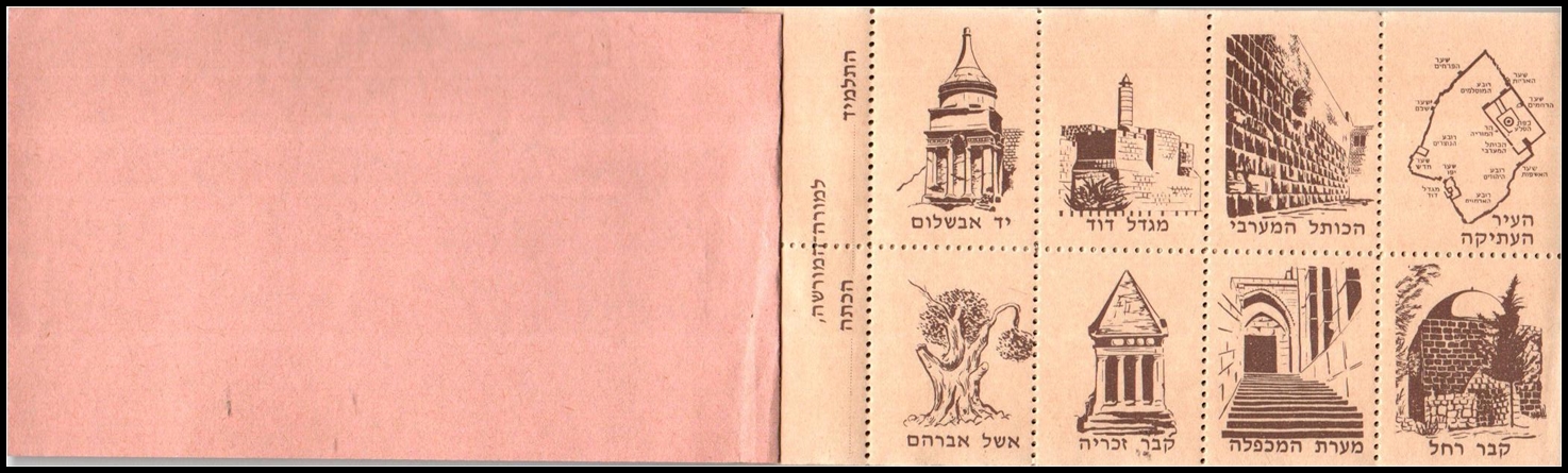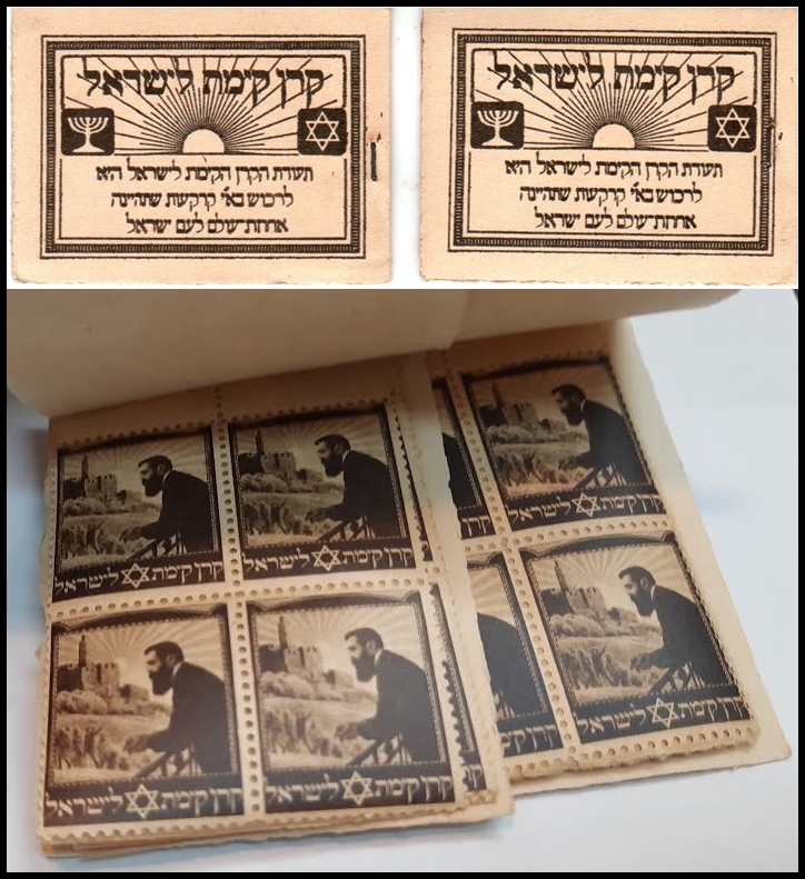 JNF 1944 – Diaspora Issue (Hirschberg Design). Original booklet, incomplete with first pane missing 2 of 6 stamps. Catalog: Rochlin A236.